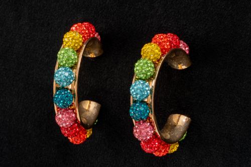 Metal dorado, esferas pavé de colores.