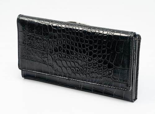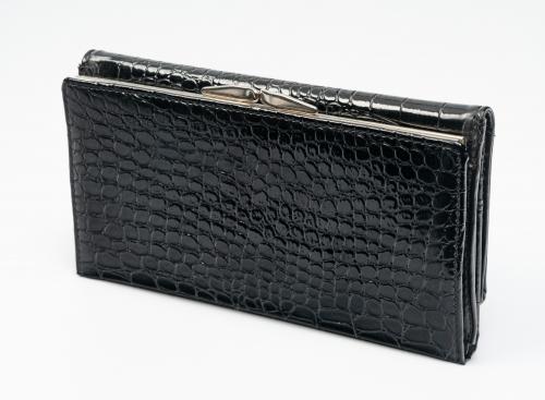 Monedero de dos compartimientos con cierre tipo pestaña metálico.
