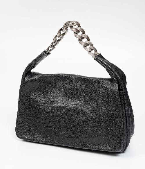 Bolsillo interno con cremallera y dos compartimentos tipo folder. Cadena gruesa plateada. Cierre magnético.