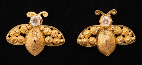Plata con baño de oro 9 25, filigrana, cristal imitación cristal. Alto 2.7 cm - Ancho 3 cm