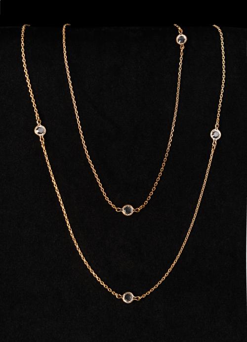 Cadena de metal dorado y cristales.