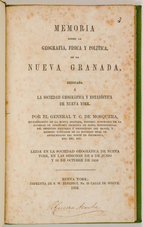Memoria sobre la geografía, física y política, de la Nueva Granada