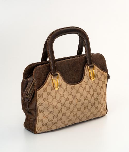 Herrajes dorados. Forro en tela y bolsillo con cremallera interno.