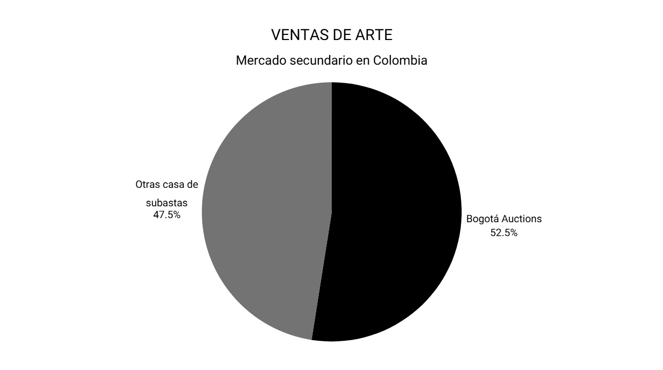 Específicamente en el segmento de Ventas de Arte, Bogotá Auctions mantiene la mayoría del mercado con un 52.5% de participación, reafirmando su posición como el referente principal para la comercialización de obras de arte en el mercado secundario colombiano frente al 47.5% que se reparte entre las demás casas.